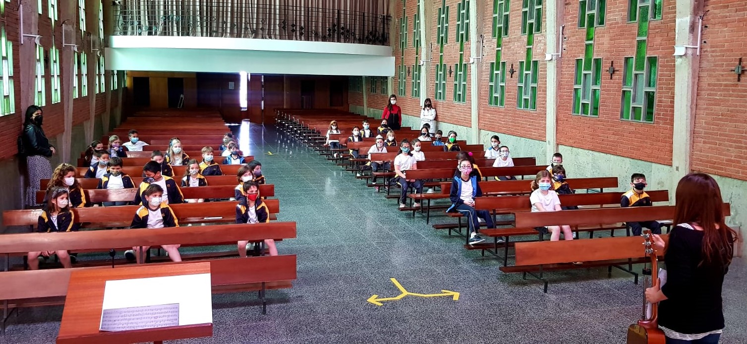 Como no puede ser de otra forma, por cursos y respetando las normas de seguridad sanitarias, acudimos a la iglesia del colegio.